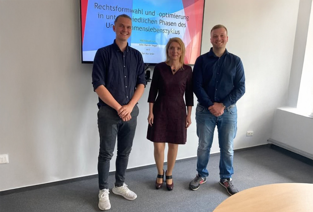 Thema ihrer Bachelor-Arbeit war „Rechtsformwahl und –optimierung in unterschiedlichen Phasen des Unternehmenslebenszyklus“. Sie wurden dabei von Frau Professor Petra Trägenap begleitet.